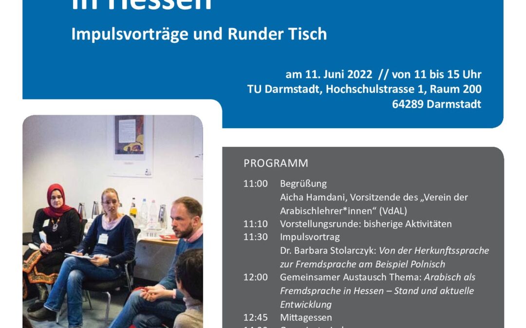 Arabisch in Hessen Seminar in Darmstadt 11.06.22 von Hamdani | Mai 30, 2022 | 0 Kommentare Kommentar absenden Antwort abbrechenDeine E-Mail-Adresse wird nicht veröffentlicht. Erforderliche Felder sind mit * markiertKommentar * Name * E-Mail-Adresse * Website Name, E-Mail-Adresse und Website in diesem Browser für meinen nächsten Kommentar speichern.